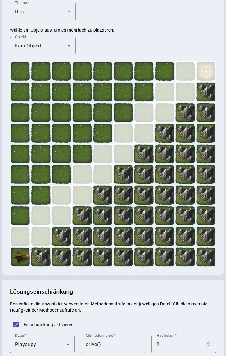 Based on the Kara learning environment students write code (Python, Java, or C++) to navigate a dinosaur character to a target while avoiding obstacles and collecting items. This was developed by Felix Thalmann under my supervision.